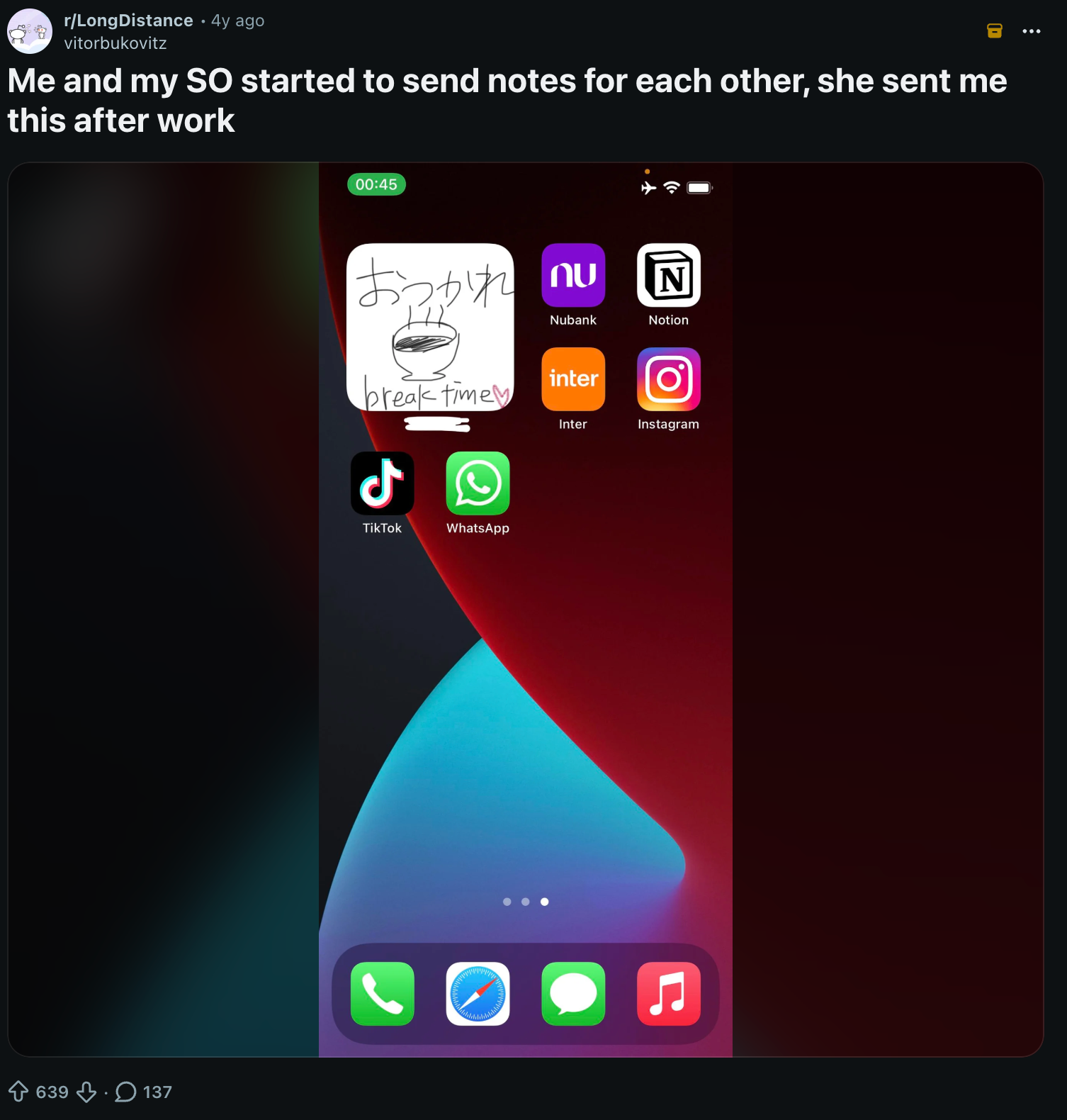 When I started using the app with one of my best friends that's when I saw how fun it was to simply wake up or at a random time see my home screen with something unexpected, so I make a post on reddit about it: